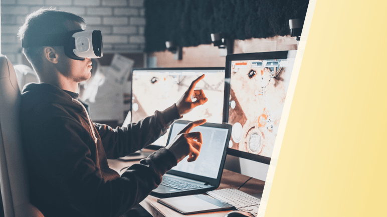 A Realidade Virtual permite transmitir a sensação de estar fisicamente dentro de um ambiente virtual. Essa experiência imersiva só ocorre quando combinamos os 3 (três) pilares da Realidade Virtual.